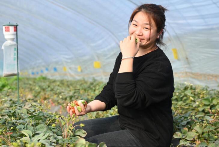 现摘现尝草莓。杜刚 摄