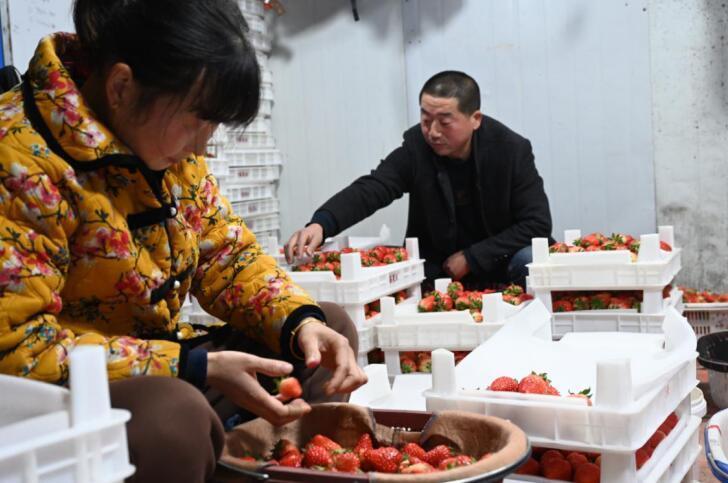 莓农装点草莓。杜刚 摄